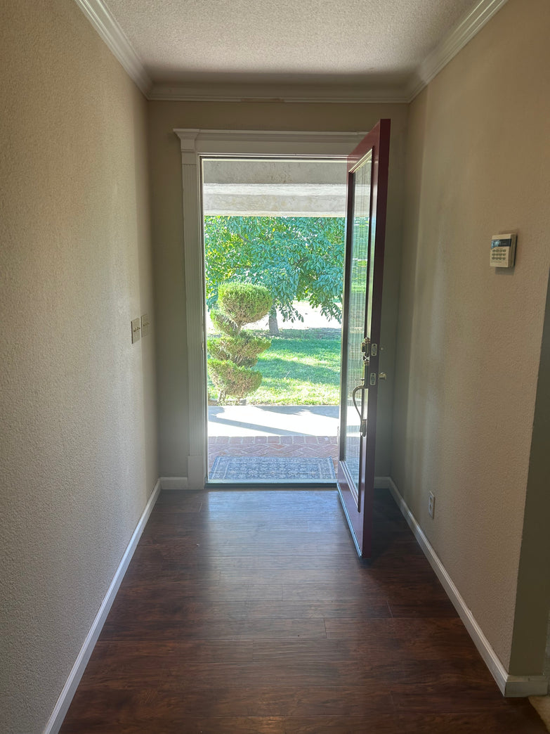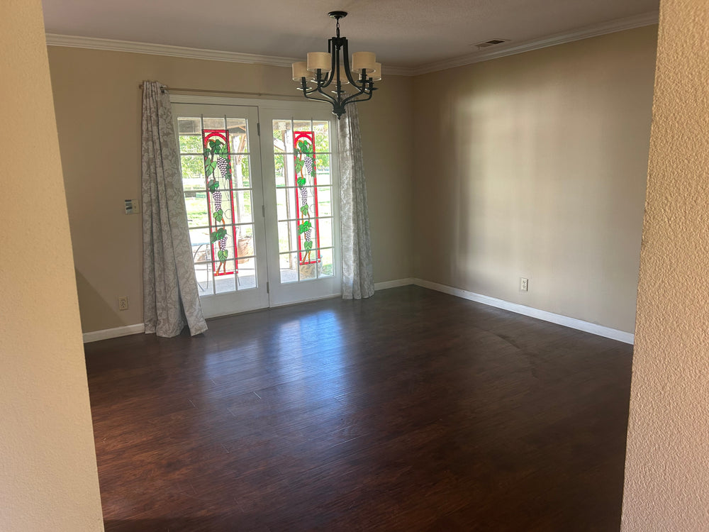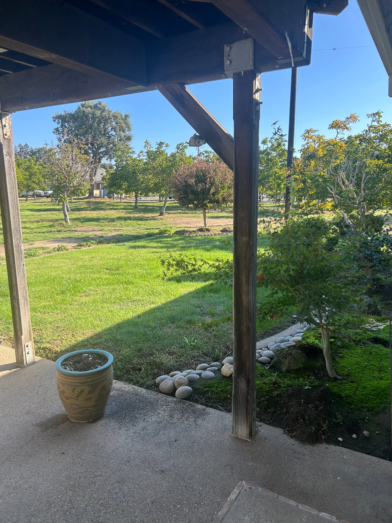 Country setting home only a mile from wine and roses. This home is set on a stunning property, nestled behind trees with a gated entrance. Three car garage with built-in shelving, inside laundry room with washer and dryer. Kitchen has brand new appliances with a window above sink that overlooks the beautiful scenery of the backyard and Orchard. Dining room with patio doors that lead into backyard patio with outside fireplace. Living room with fireplace, shutters throughout home. One bathroom is located off the laundry room, bathtub in bathroom two with windows that look into orchard. Primary suite has ceiling fan, walk-in primary closet with shelving and drawers. Third bedroom has beautiful, built-ins, and glass doors. Contact our office for information on a showing and apply today!